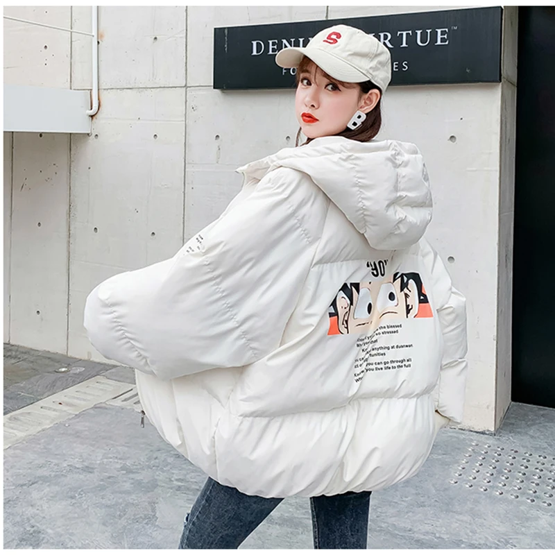 Product Name: Oversize Vrouwen Jas Winter Koreaanse Kleding Losse Cartoon Print Vrouwen Parka Hooded Dikke Warme Harajuku Donsjack Vrouwen Jas