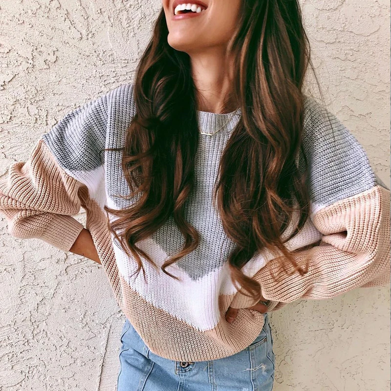 Product Name: 2019 Nieuwe Herfst Kleurrijke Gebreide Truien Vrouwen Casual Chic Boho Trui Jumper Loose Fit Lange Mouwen Ronde Hals Pullover