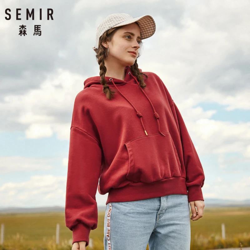 Product Name: Semir Vrouwen Fleece Gevoerde Capuchon Gedaald Schouder Pullover Met Gevoerd Trekkoord Kap Boord Aan Manchet En Zoom