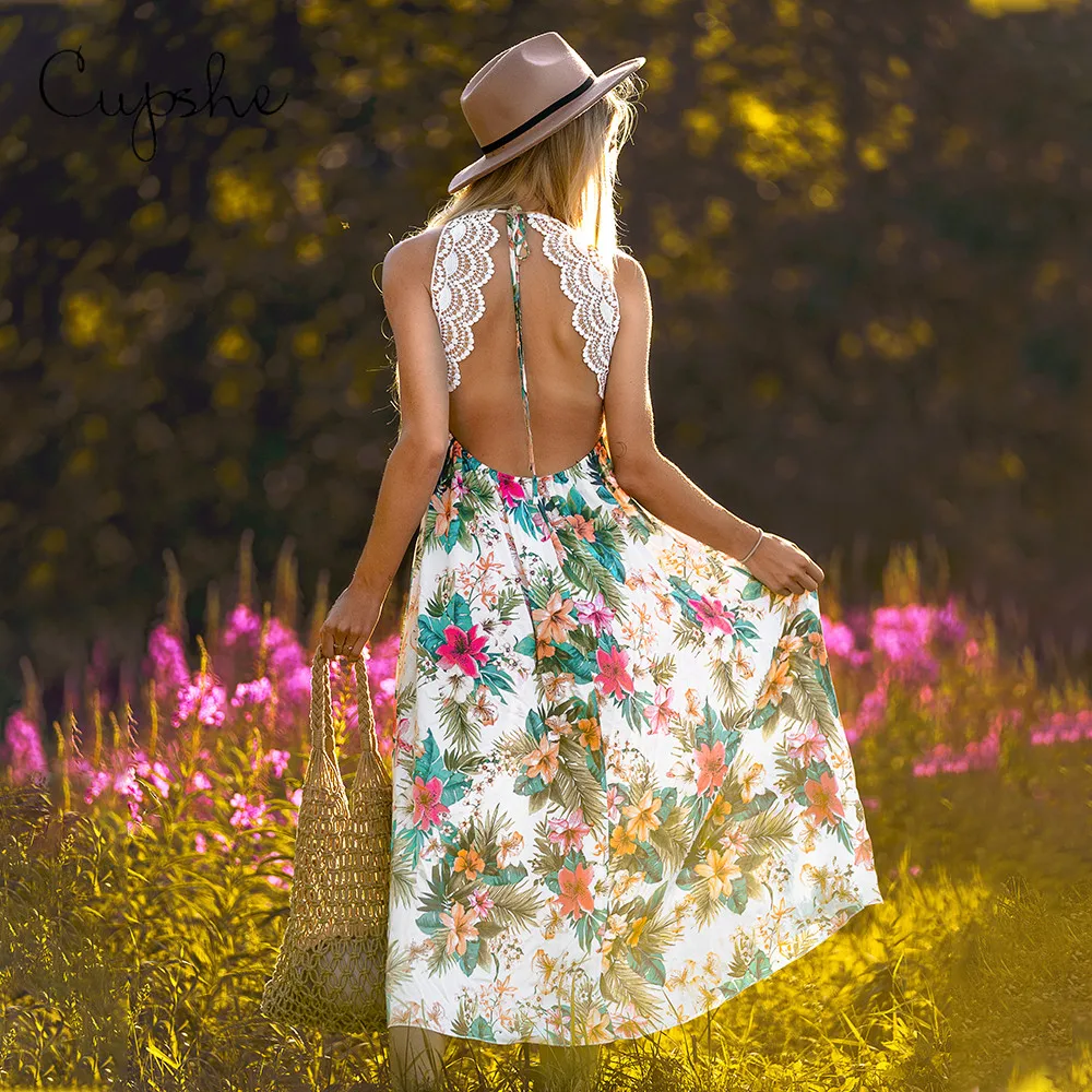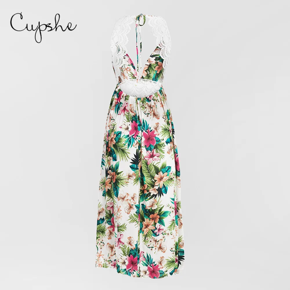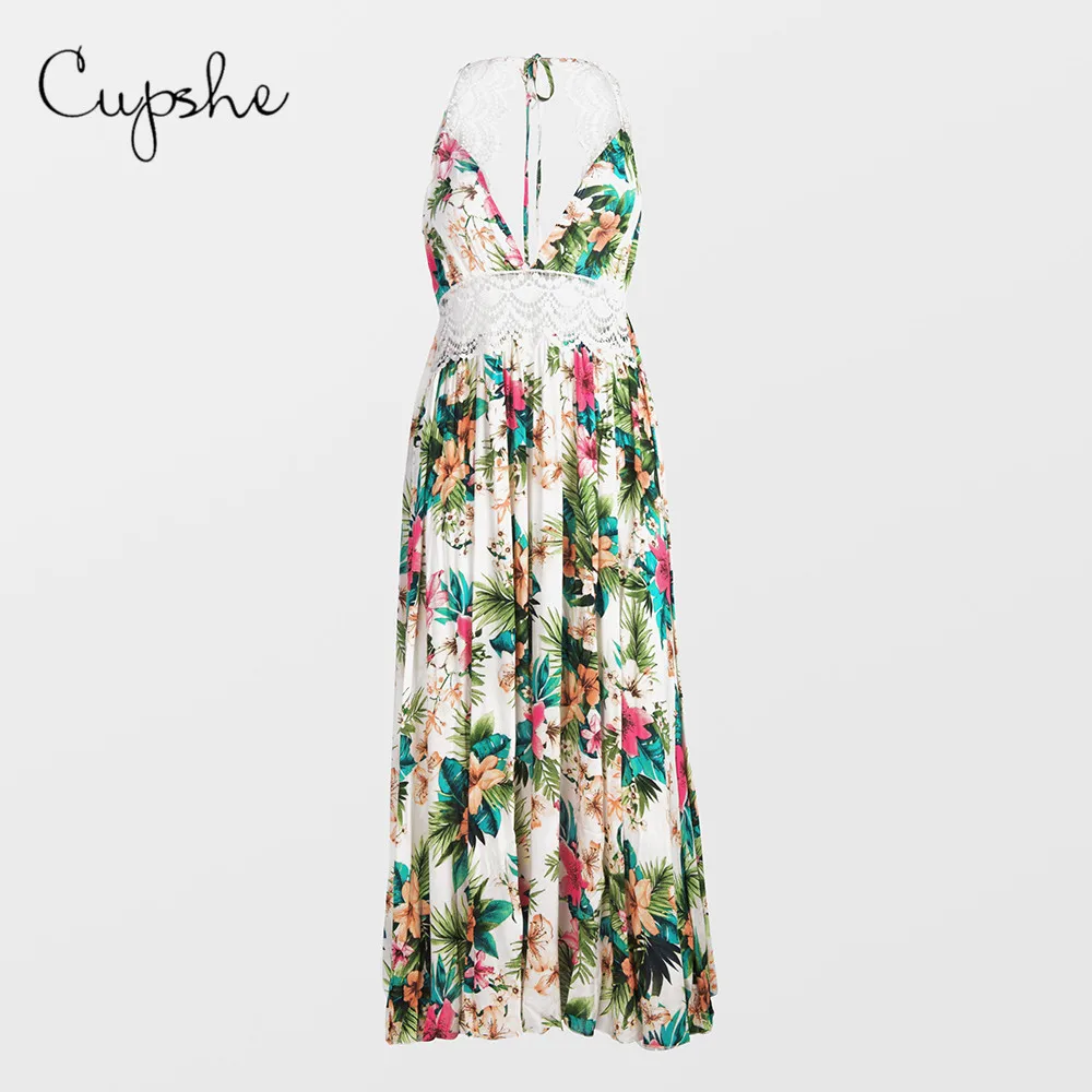 Special Offer CUPSHE Bohemian V hals Vrouwen Zomer Lange Midi Jurk Kant Spaghetti Band 2019 Mouwloze Strand Vestidos Bloemen Zonnejurk Discount 44% Today!