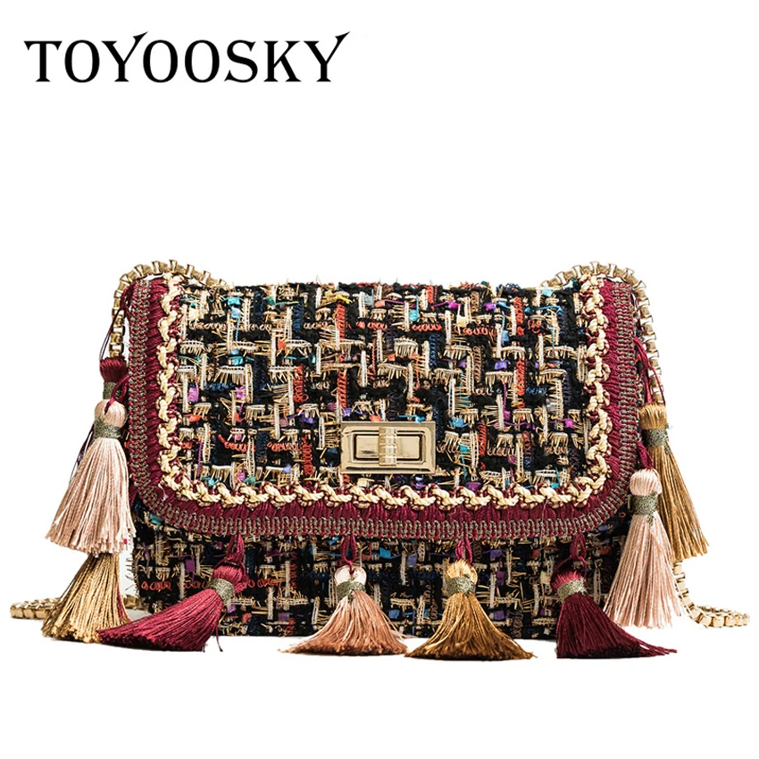 Special Offer TOYOOSKY 2018 Ins Hot Fashion Wol Vrouwen Handtas Kwastje Plaid Messenger Bag Vintage Dames Flap Hoge Kwaliteit Keten Schoudertas Discount 31% Today!