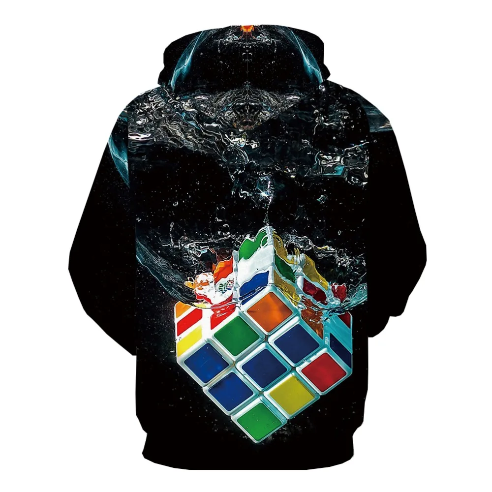 Product Name: Kyku 3d Hoodies Rubiks Cube Sweatshirts Mannen Squared Hoodes 3d Geometrische Hoody Anime Zwarte Hoodie Print Water Hooded Casual