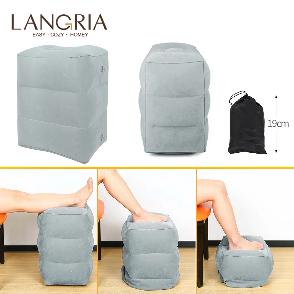 Special Offer LANGRIA Draagbare Reizen Opblaasbare Voet Been Rest Kussen Kussen Verstelbare Hoogte met Opbergtas voor Vliegtuig Home Car Office Discount 30% Today!